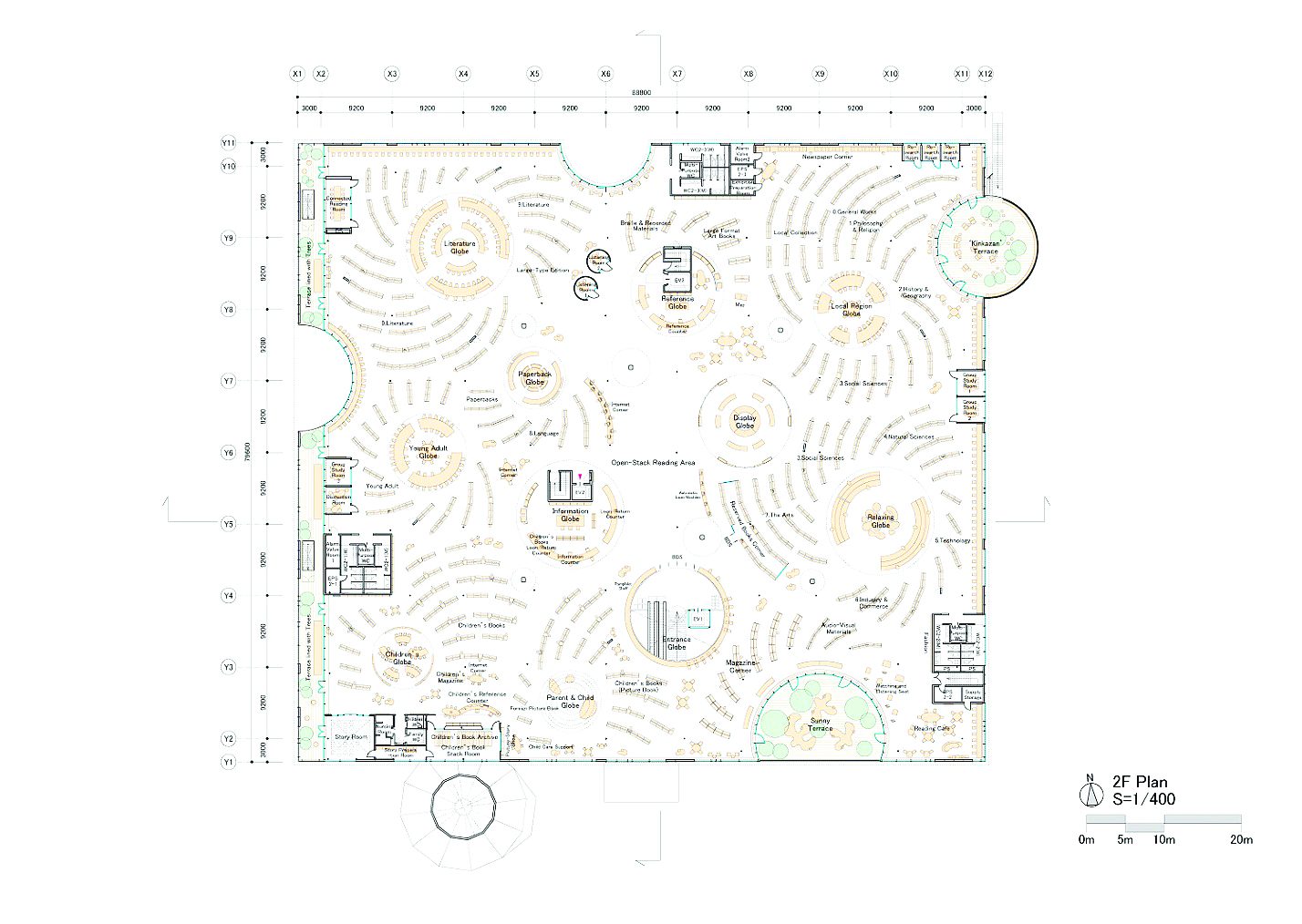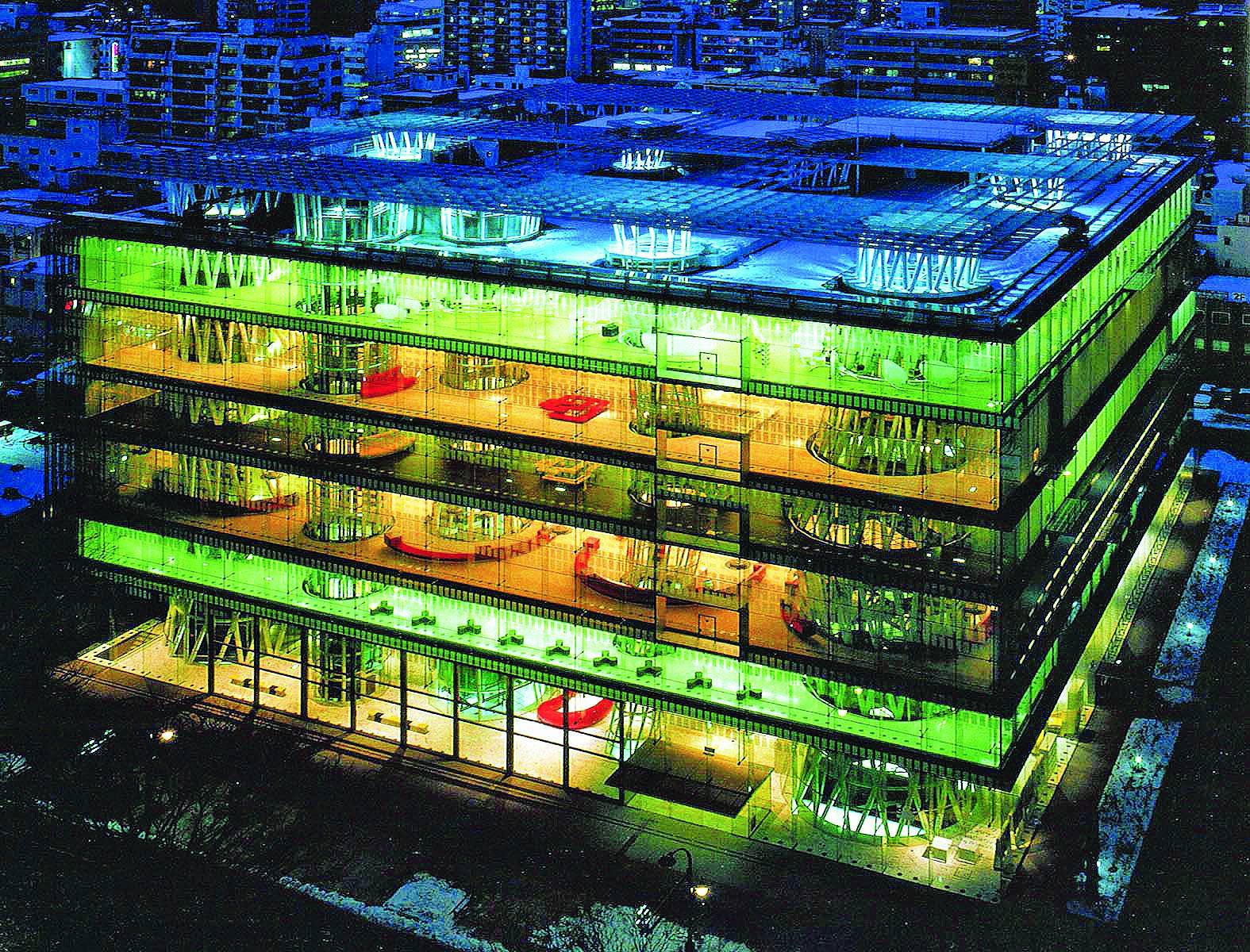 Công trình hình chữ nhật 2 tầng kích thước 90mx80m. Ở đây, Ito đã tạo ra 11 cái Chao lớn như 11 cái dù thả từ trên xuống với những hình dạng và kích thước khác nhau và đều bằng Polyester. Những chiếc Chao này lấy ánh sáng khuyếch tán từ mái. Con người tự do đi lại và lựa chọn chỗ ngồi đọc. Họ đọc sách và có các hoạt động vui vẻ dưới những vòm ánh sáng này.