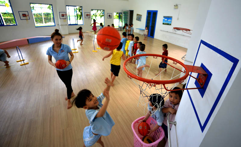 Phòng tập đa năng được xây dựng nhiều môn để các em học sinh vui chơi