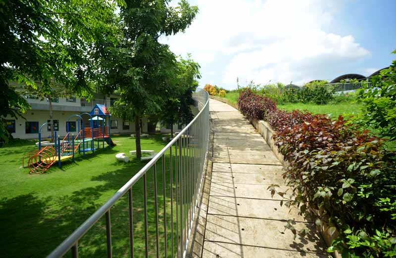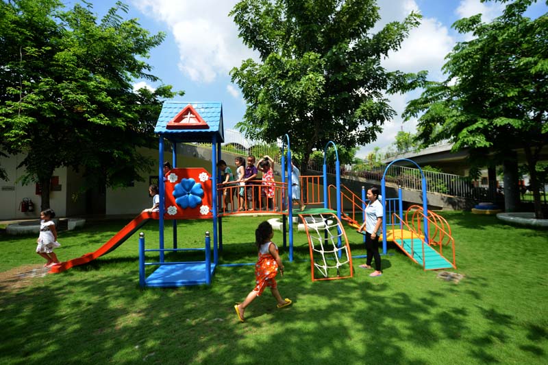 Khu vui chơi ngoài trời được thiết kế phủ với 70% là lớp cỏ màu xanh, gần gũi với thiên nhiên