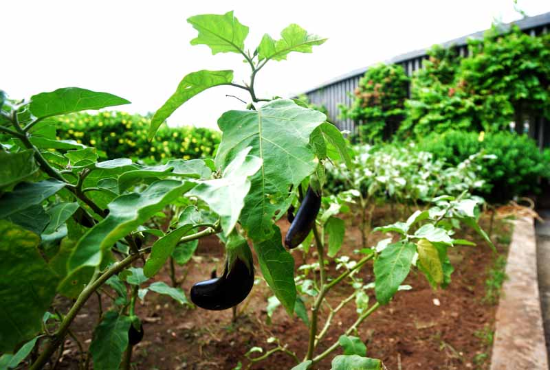 Lối đi lên khu vườn sinh thái với đủ các loại cây rau, củ , quả